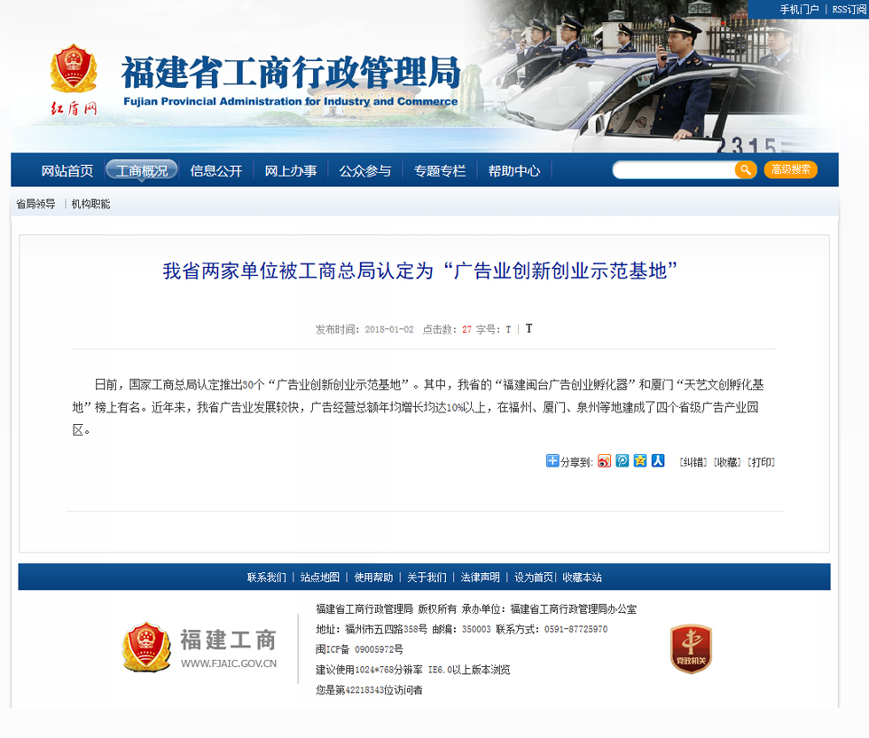 日前,國(guó)家工商總局認(rèn)定推出30個(gè)“廣告業(yè)創(chuàng)新創(chuàng)業(yè)示范基地”。其中,我省的“福建閩臺(tái)廣告創(chuàng)業(yè)孵化器”和廈門“天藝文創(chuàng)孵化基地”榜上有名。近年來,我省廣告業(yè)發(fā)展較快,廣告經(jīng)營(yíng)總額年均增長(zhǎng)均達(dá)10%以上,在福州、廈門、泉州等地建成了四個(gè)省級(jí)廣告產(chǎn)業(yè)園區(qū)。